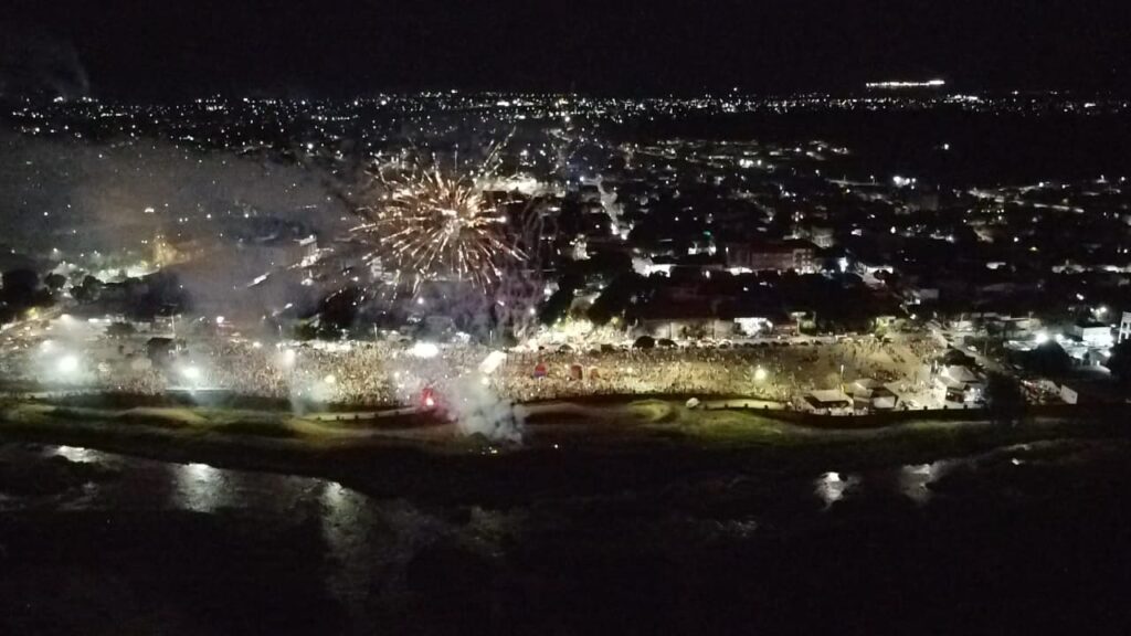 A programação conta com shows musicais ao vivo, mas o momento mais aguardado da noite é a tradicional queima de fogos, que ilumina o céu sobre o Rio São Francisco e encanta o público presente.