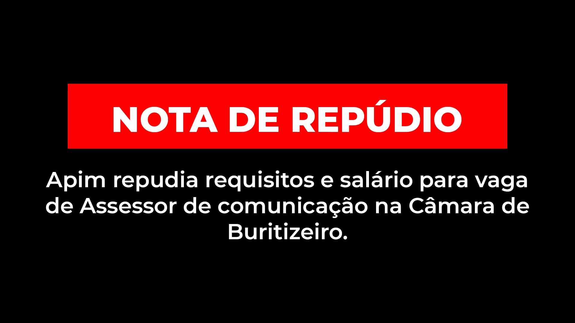 A Associação dos Profissionais da Imprensa Mineira (APIM) vem a público expressar seu veemente repúdio à Câmara Municipal de Buritizeiro pela recente publicação de edital de concurso público que apresenta critérios inadequados e desrespeitosos para o preenchimento do cargo de Assessor de Comunicação.