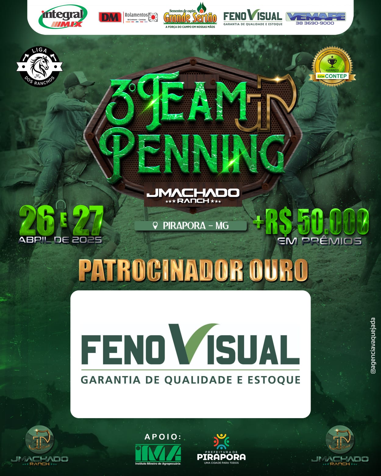 Com o apoio da Prefeitura de Pirapora, através da Secretaria de Esporte, Juventude e Cultura (SEJUC), será realizado no município o 3º Team Penning, neste final de semana (26 e 27/04), que distribuirá R$ 50.000,00 em prêmios, dentre as três categorias que serão disputadas. Com entrada franca, o evento será no circuito montado próximo à via de acesso para o aeroporto de Pirapora.